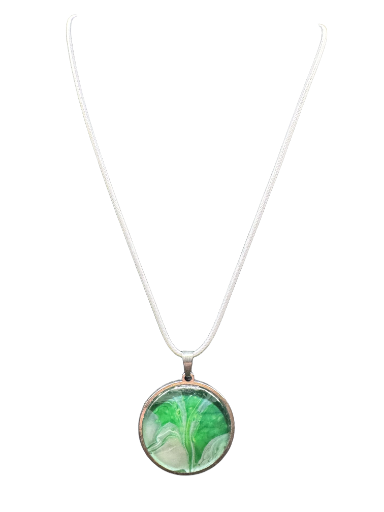 Elevate your style with this exquisite green marble pendant necklace, featuring captivating swirls of emerald and ivory on a hand-crafted pendant. Suspended gracefully from a fine sterling silver chain, each piece is unique—perfect for adding a touch of sophistication to both everyday looks and special occasions. The pendant measures approximately 1 inch in diameter, with a 16-inch adjustable chain for a comfortable fit. Discover the beauty of artisanal design in every detail.